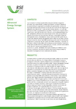 Il prodotto ADESS è un sistema di accumulo prototipale, adatto per la fornitura