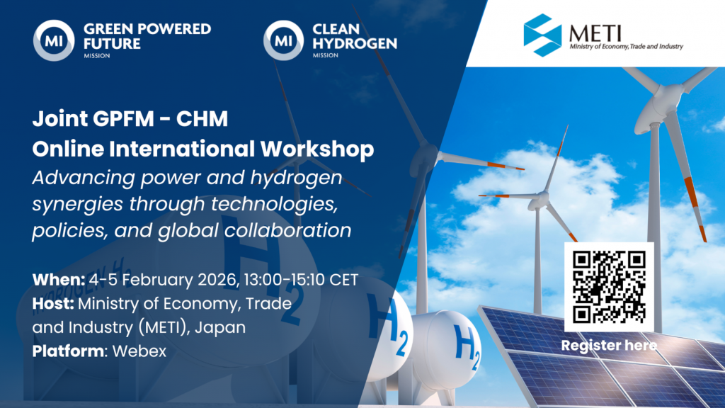 Nei giorni 4 e 5 febbraio 2026, dalle 13:00 alle 15:10 CET, si terrà il workshop internazionale online intitolato “Advancing power and hydrogen synergies through technologies, policies, and global collaboration”. L’evento è organizzato congiuntamente dalla Green Powered Future Mission (GPFM) e dalla Clean Hydrogen Mission (CHM) nell’ambito di Mission Innovation, con il supporto di RSE, e ospitato dal Ministry of Economy, Trade and Industry (METI) del Giappone.