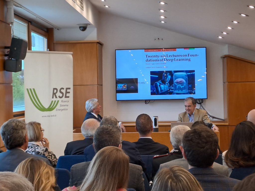 Comprendere i meccanismi dell’intelligenza umana e artificiale per affrontare le sfide della transizione energetica: è questo il filo conduttore dell’incontro “Nuove frontiere tra neuroscienze e Intelligenza Artificiale”, promosso il 15 aprile a Roma, presso la sede del GSE, da RSE con il Prof. Tomaso Poggio del MIT – Massachusetts Institute of Technology di Boston, fisico e informatico, nonché componente del Comitato Scientifico di RSE. Un’occasione per riflettere sulle prospettive date dall’innovazione tecnologica applicata, inserite nell’attuale contesto geopolitico che rende ancora più complesse le sfide dei settori elettro-energetico e della sostenibilità. Così si è svolto, alla presenza del Comitato Scientifico (CS) RSE, di illustri ospiti del mondo istituzionale e politico e per i ricercatori di RSE, un dialogo aperto, che sempre più spesso nel recente passato di RSE trova una lungimirante espressione attraverso il confronto internazionale.