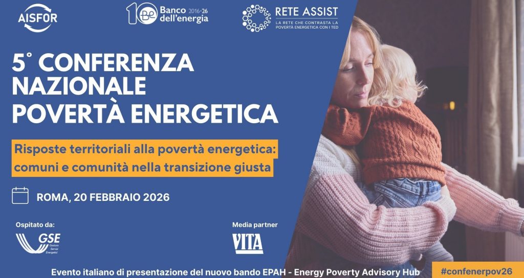 Il 20 febbraio si è svolto a Roma la 5° Conferenza Nazionale sulla Povertà Energetica, l’incontro organizzato da organizzata da AISFOR, Banco dell’Energia e RETE ASSIST per favorire una riflessione sull’importanza dei servizi energetici essenziali per una vita dignitosa: riscaldamento, raffrescamento, illuminazione.